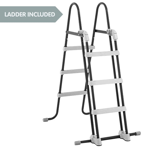 The large swimming area can fit the whole family, with plenty of room for the kids to splash and play. Equipped with heavy-duty tubing and a puncture-resistant liner, this pool is easy to set up and assemble. It also comes with a filter pump and safety ladder for convenient access.