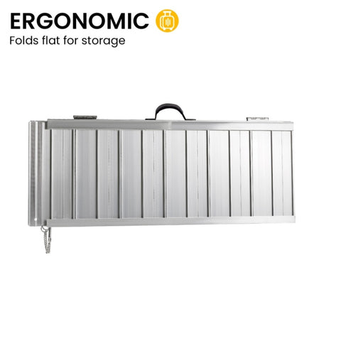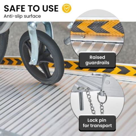 With its high-strength aluminium construction, this ramp can accommodate up to 275kg. The non-slip surface and guardrails ensure your peace of mind and safety.