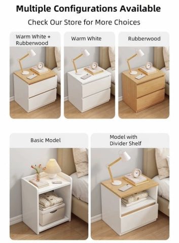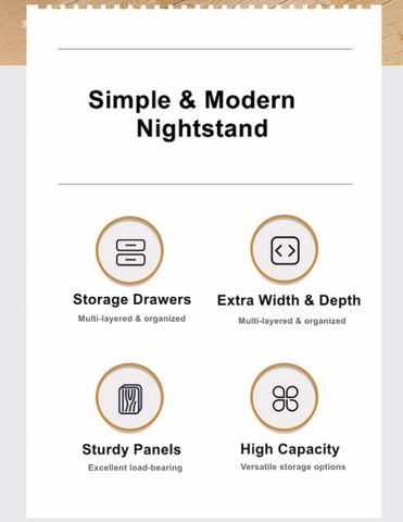 This Nordic-style bedside table features a minimalist modern design, perfectly combining warm white with natural oak wood grain texture, creating a cozy and comfortable visual effect. The cabinet has three spacious drawers, providing rich layered storage space to meet various storage needs. The top is made of an entire oak wood grain panel, which is beautiful, durable, and easy to clean. This bedside table adopts a handle-free design, with recessed finger pulls on the front edges of the drawers, making them convenient to use while maintaining a sleek appearance. The wood grain decorative strips on both sides of the drawers add a design element, while the classic combination of white and wood grain suits various bedroom styles, especially Nordic, Japanese, and modern minimalist interior decor.