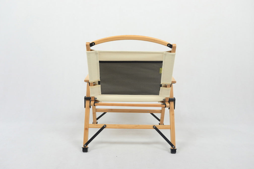 Bamboo Canvas Foldable Outdoor Camping Chair - Wooden Travel Picnic Park in Khaki/Beige