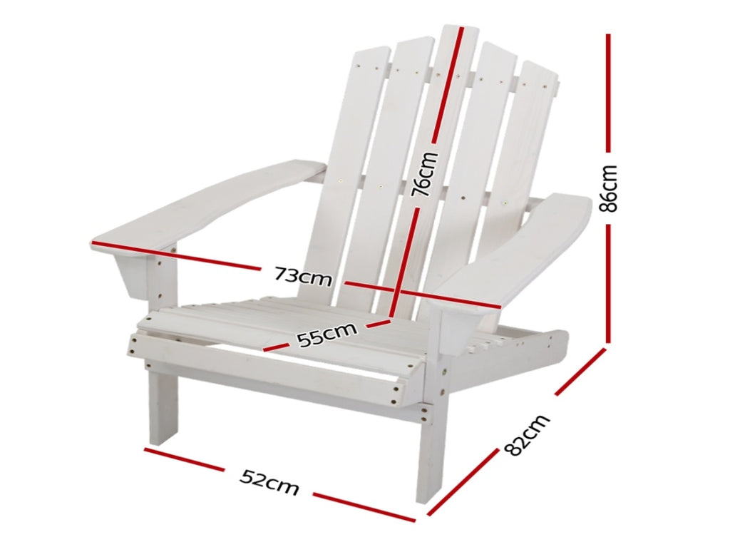 Gardeon Adirondack Outdoor Chairs Wooden Beach Chair Patio Furniture Garden White FF-BEACH-UF-CH-WH