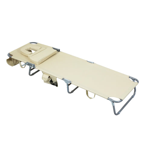 Levede Foldable Beach Lounge Chairs with Face Hole Khaki OD1066-KH