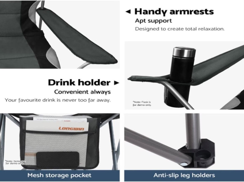 Whether you are camping outside or chilling out in the privacy of your own backyard, deck or pool, the Weisshorn Armchair is the perfect seat for your unperturbed relaxation.With its powder-coated high tensile steel frame, the Armchair is strong and sturdy and ready for robust use both outdoors or indoors. Despite its light weight, the Armchair has a weight capacity of up to 100kg and features quality craftsmanship with its legs cross-braced all round for enhanced support. Likewise, the durable 600D Oxford fabric well-padded seat is designed to withstand the elements and provide ultimate comfort in every possible way. Not least, the well-stitched Armchair also comes with a drink holder attached to the wide armrest and a back organizer pouch for your personal essentials.With a bonus carry bag, the Weisshorn Armchair is ready to go wherever your adventure takes you. Get yours today.
