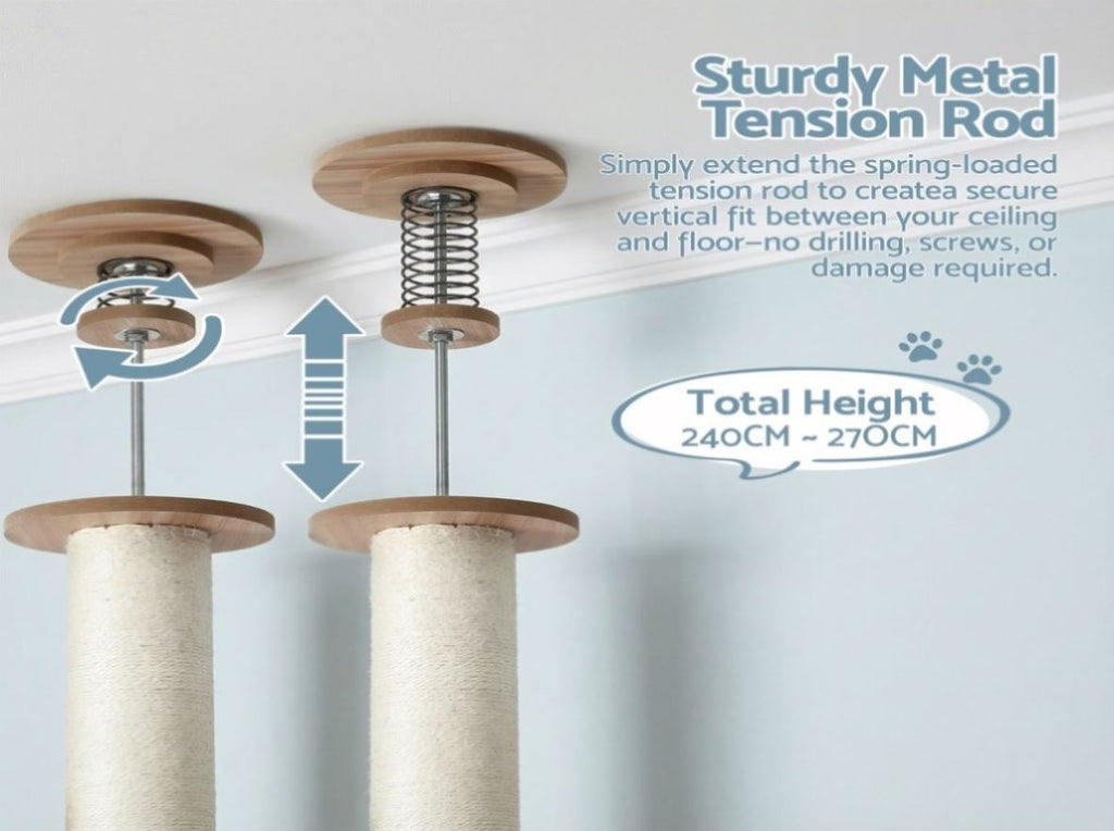 i.Pet Cat Tree Tower Floor to Ceiling Scratching Post 270cm Beige PET-CAT-POLE-W-BE