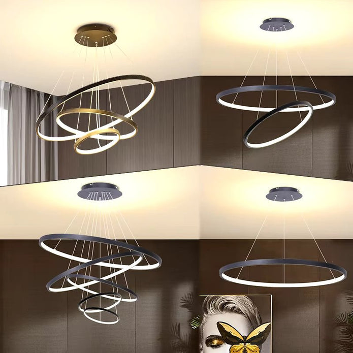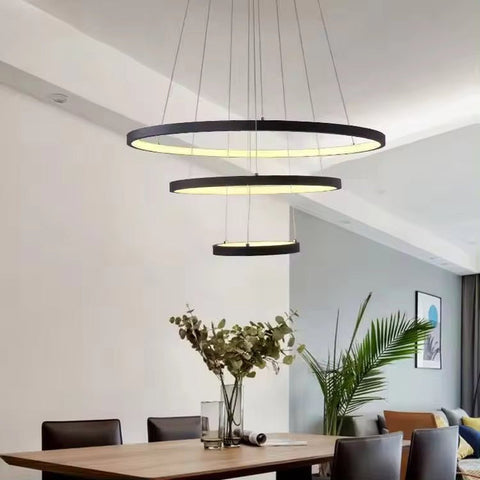 BAMDECOR 18801 Modern LED Chandelier, Dimmable Pendant Light with Remote Control Rings Round Ceiling V255-BAM-18801/3-BLACK