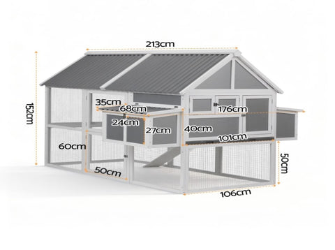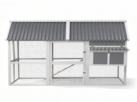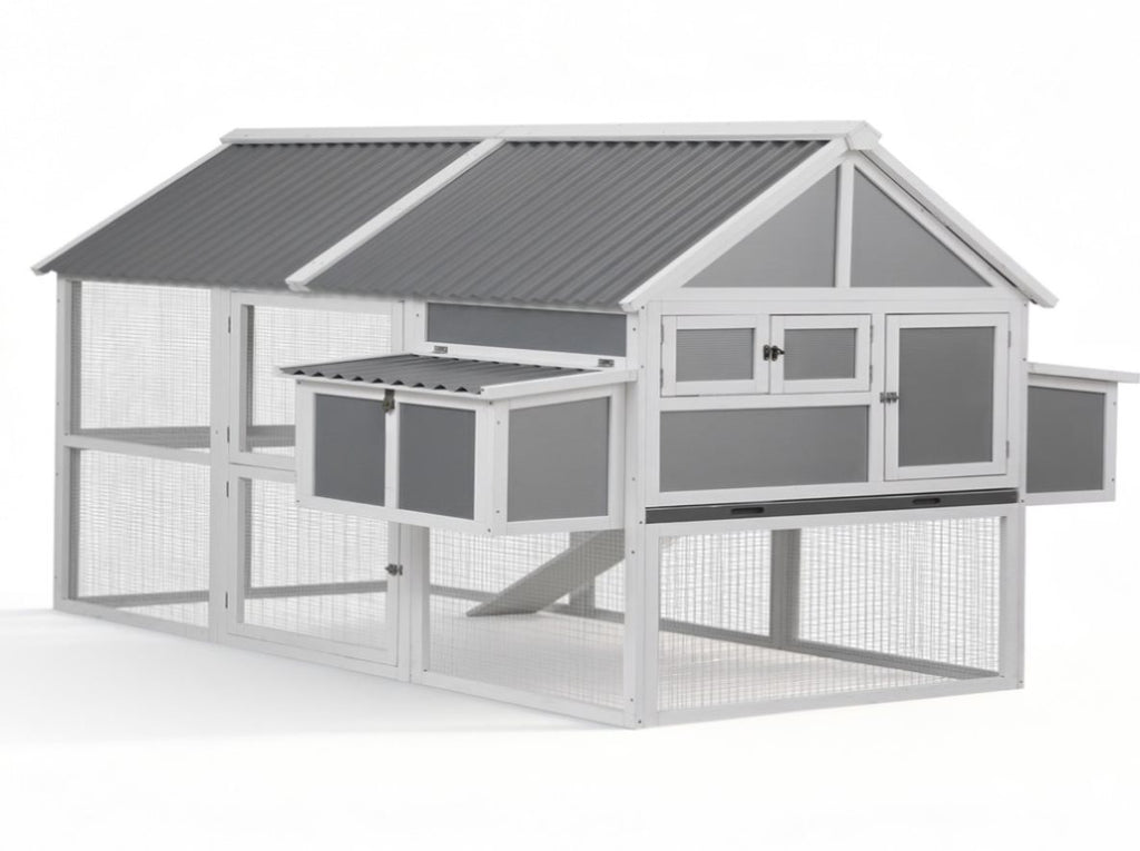 i.Pet Chicken Coop Large Outdoor Rabbit Hutch Chook House Hatch Box With Run Grey White PET-CH-P213-GR-AB