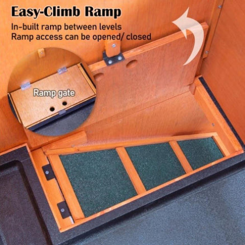With our Paw Mate ARIA pet hutch, you have a piece of mind as it gives them protection and plenty of space to move. As constructed from non-toxic fir wood and galvanised mesh wire, it ensures durability, predator-proof, and insect resistance. This spacious and double-level enclosure allows sufficient open ground floor for grazing and exercise, given that hopping up and down the ramp can strengthen your pets' muscles.