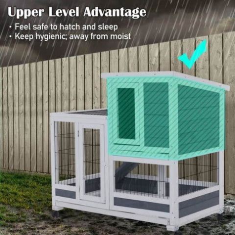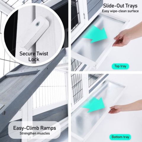 Rabbit Hutch Chicken Coop with Wheels 96.5 x 56 x 90.5cm 2 Storey Pet Cage Run HOPKINS V274-PET-RHPOLY29922-GY