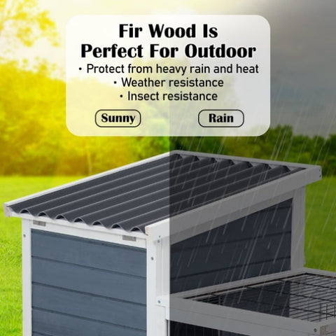 Our Paw Mate HOPKINS hutch is a great choice for pet owners who want to provide their pets with a comfortable and convenient home. Unlike many other pet hutches on the market, our hutch features an easily opened roof, which makes it much easier to access and clean. Additionally, this rollable pet house allows you to easily move the hutch to a new location, which is especially useful if you want to change up your pets' environment or if you need to move the hutch for cleaning purposes.