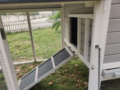 • Three large nesting boxes for the hens to lay in