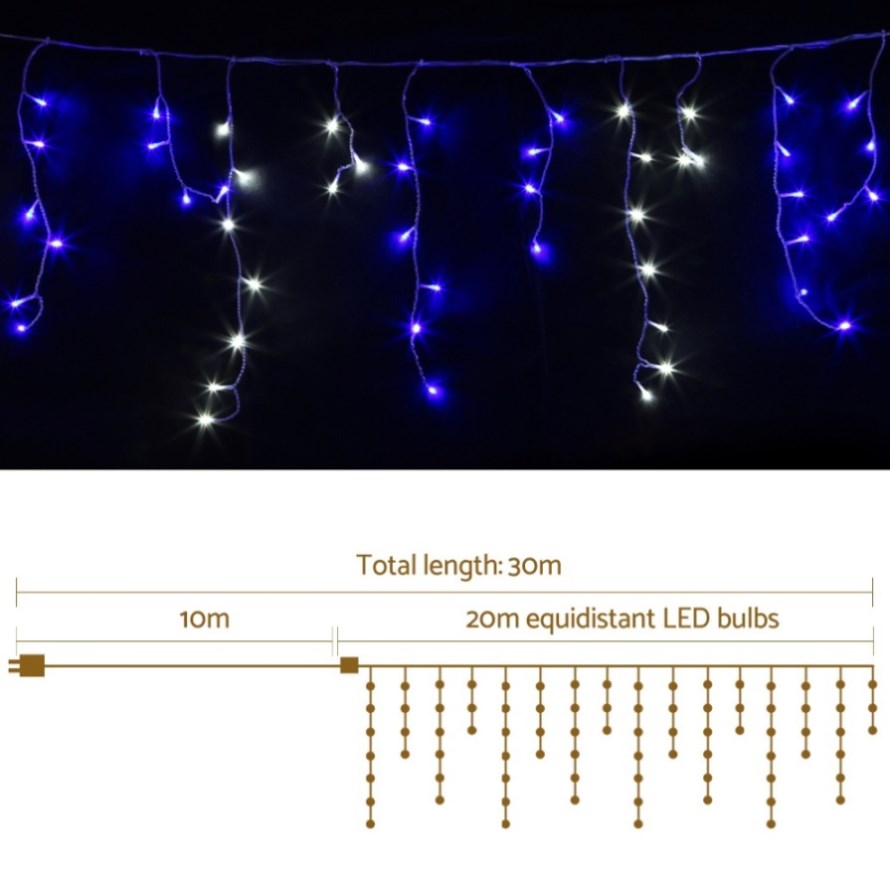 20M Christmas Lights Icicle Light 800 LED Blue White Decor Jingle Jollys XMAS-LED-800-IC-UW