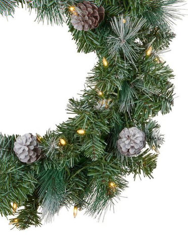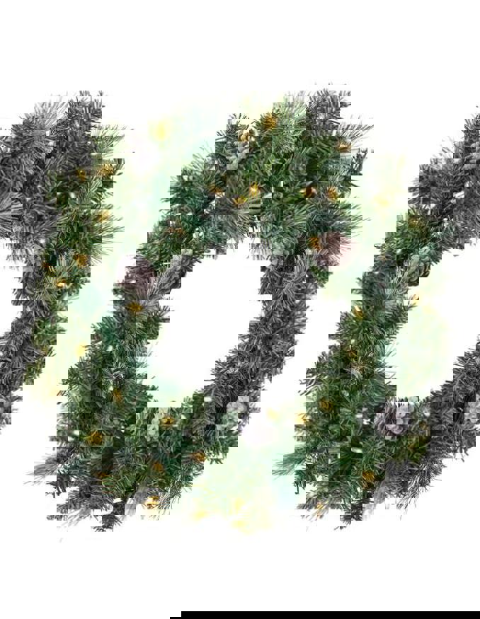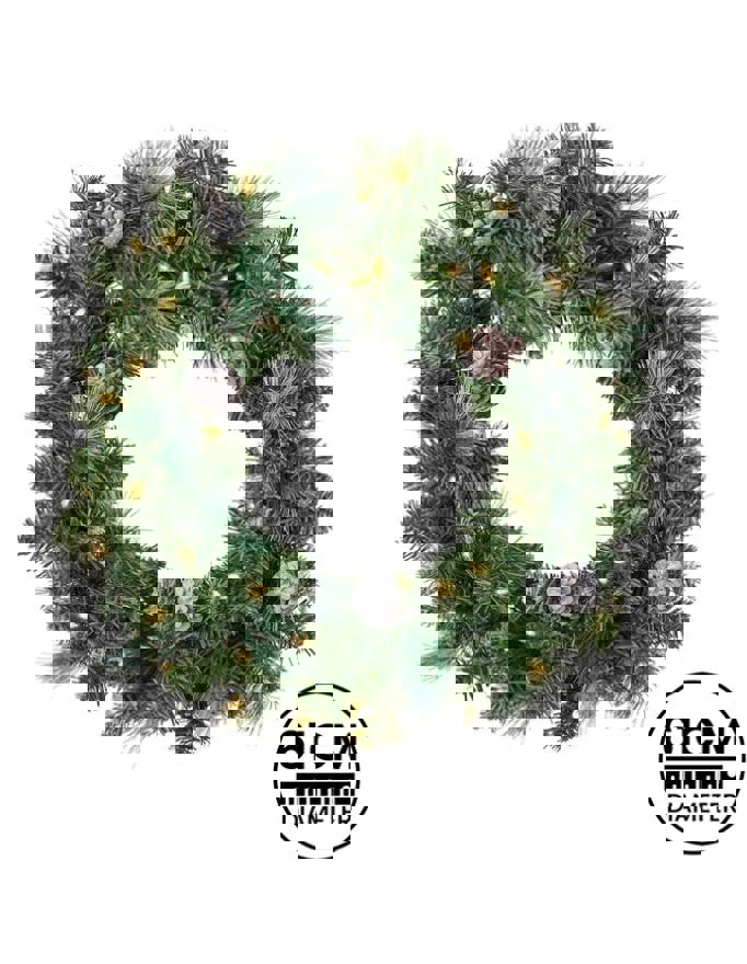 Christabelle 61cm Christmas Wreath Bayville Pine with LED Lights Front Door Decoration Ornament 112_NATBV61