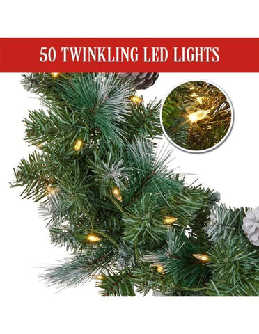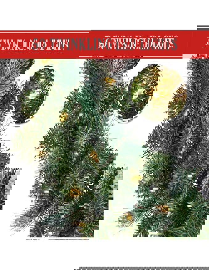 This wreath creates a welcoming ambience with its 50 warm white LED lights, adding magic and charm to any home.