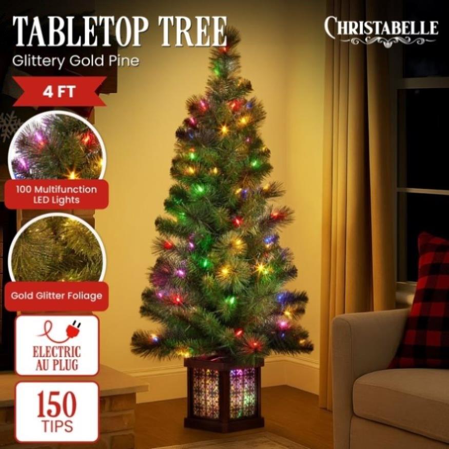 Christabelle 4ft Christmas Tree Glittery Gold Pine Foliage LED Multi Lights Xmas Decor 112_SENGG4P