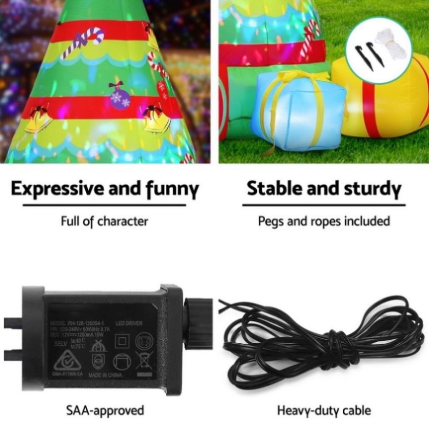 Jingle Jollys Christmas Inflatable Gift Tree 2.2M Height Flashing Light Decorations Illuminated XMAS-INF-TREE-GIFT-7FT