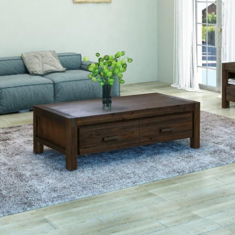 Coffee Table Solid Acacia Wood & Veneer 1 Drawers Storage Chocolate Colour V43-CT-NOW-CH