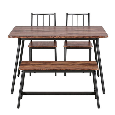 Need a sleek, practical solution for your meals This fantastic Artiss 4-Piece Dining Set is the ultimate space-saving furniture solution for any small kitchen, apartment, or breakfast nook. The set includes a spacious tabletop, two stable chairs, and a comfortable bench, making it easy to seat four people. The design features a rich Rustic Brown wood-look surface paired with a modern Black frame for a contemporary industrial aesthetic.