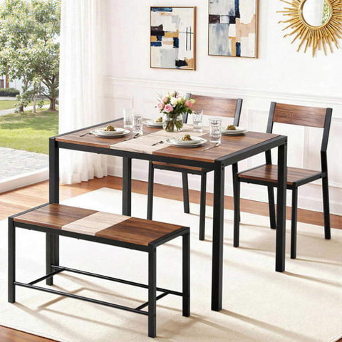 Artiss Dining Table and Chairs Set of 4 Bench Kitchen Furniture Rustic Brown DSET-D-BH25-BR