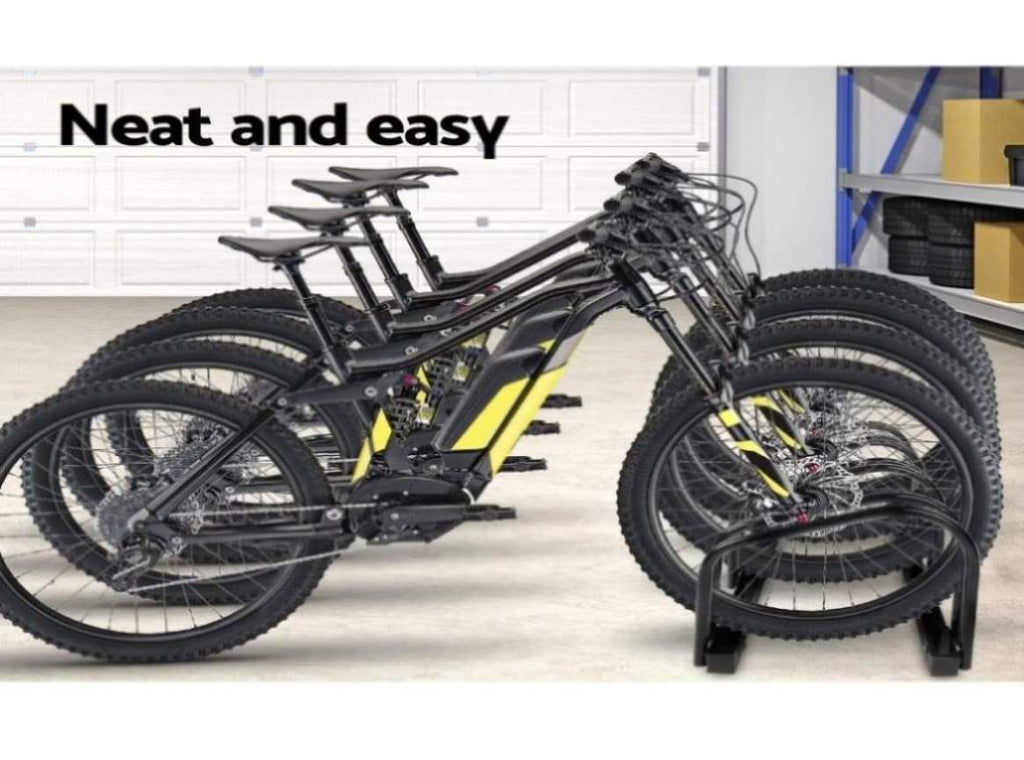 The bike parking rack can securely store up to four bikes side by side and is entirely freestanding. Additionally, the stand can be reconfigured into any vairation of four and can be installed in numerous locations. The bike rack is constructed with high quality powder coated steel with a smooth finish to prevent scratches.