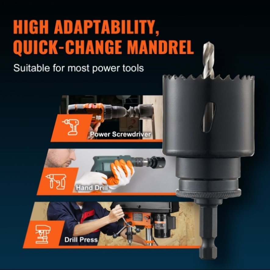 VEVOR Hole Saw Kit, 11 PCS Saw Blades, 2 Drill Bits, 1 Hex Wrench, Bi Metal M42 Hole Saw Set with V952-KJTJSJSPF11HOUAIGV0