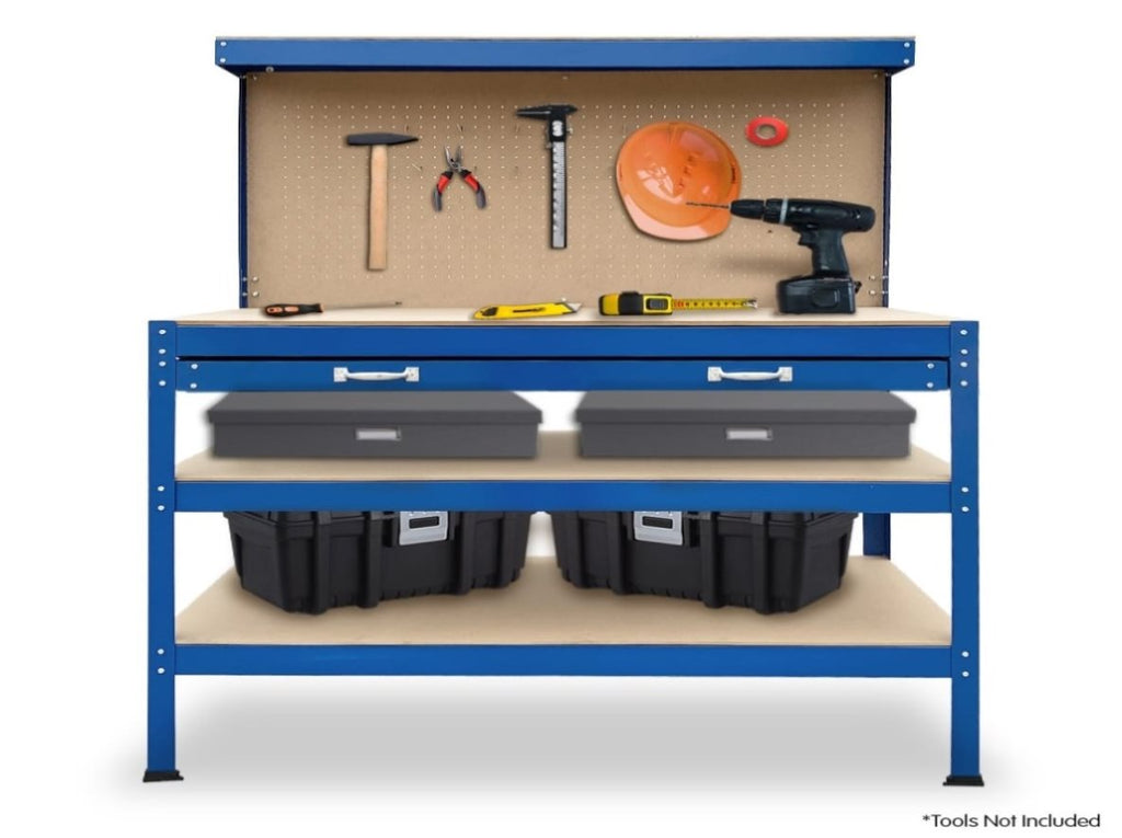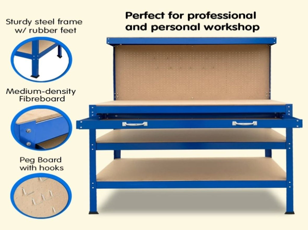 The included pegboard combined with a drawer makes for an easy storage and organization solution for your tools and materials. Constructed of steel frame and MDF particle boards it can support up to 195kg of weight, providing you with a reliable work surface for all your various needs.