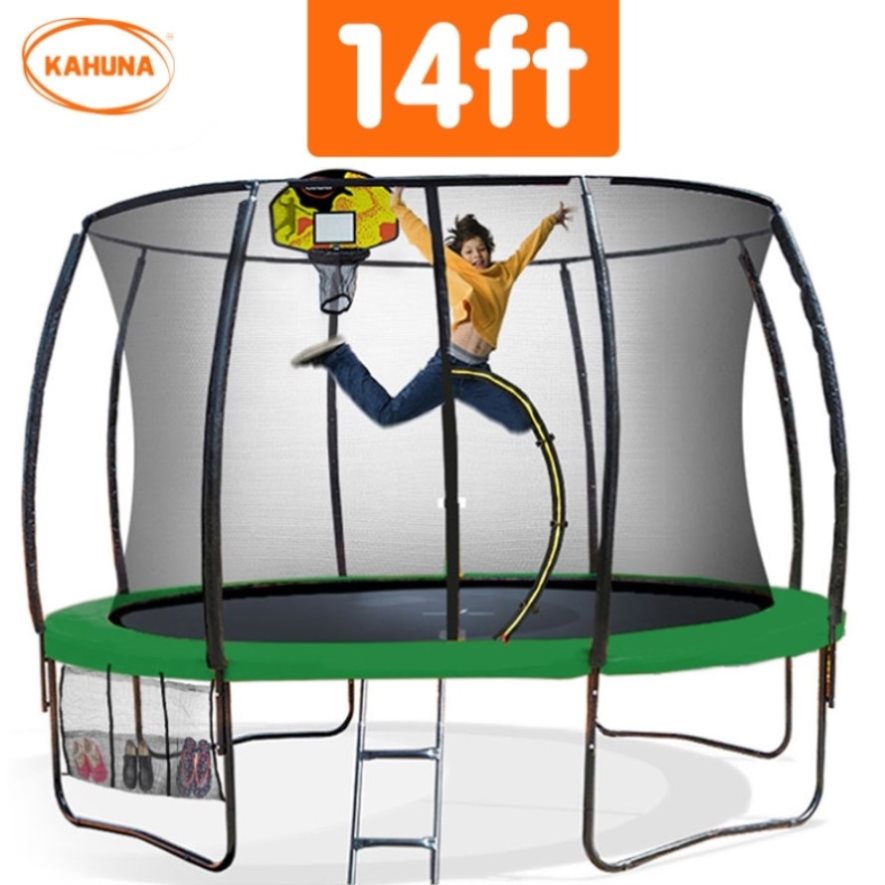 Kahuna Trampoline 14 ft with Basketball Set - Green TRA-KAH-14-GN-BB