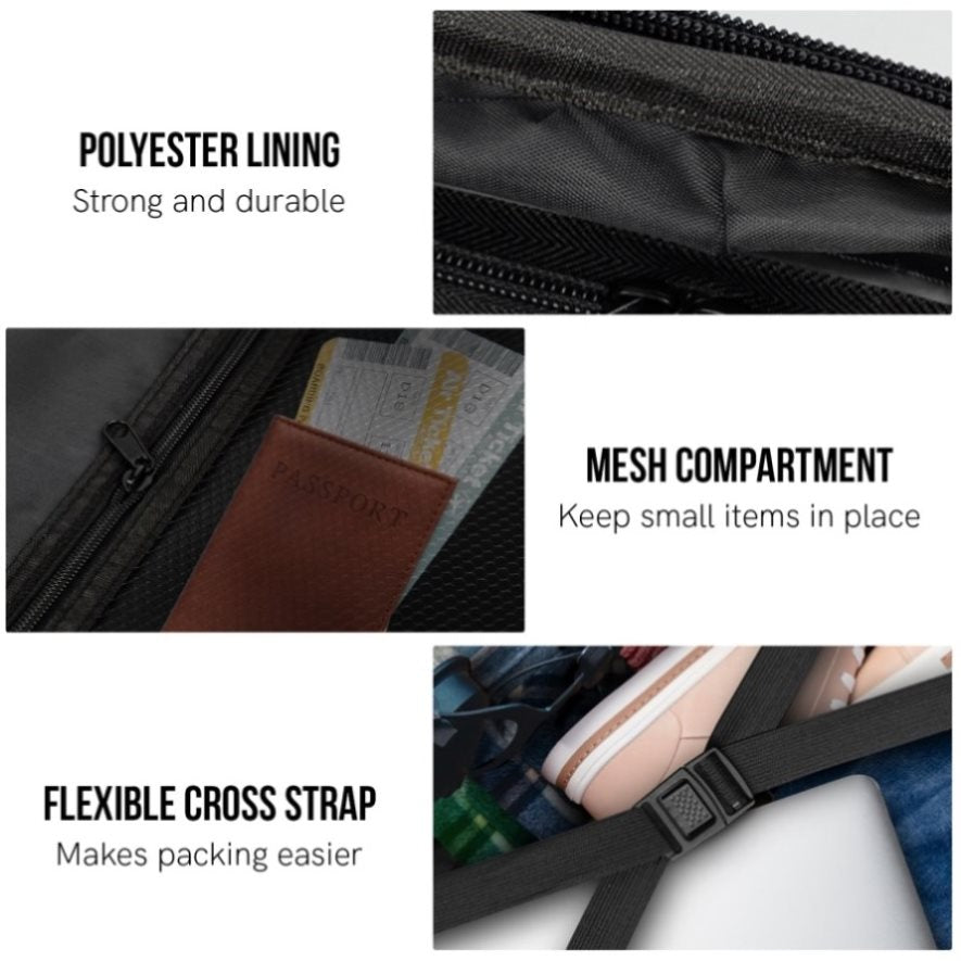 This bag is a breeze to bring along thanks to its silent 360-degree wheels and smooth aluminium handle. The integrated TSA lock will keep your belongings secure, while the expandable zipper provides extra capacity when you need it. The adjustable cross strap will keep clothes, shoes and other packed items in place.