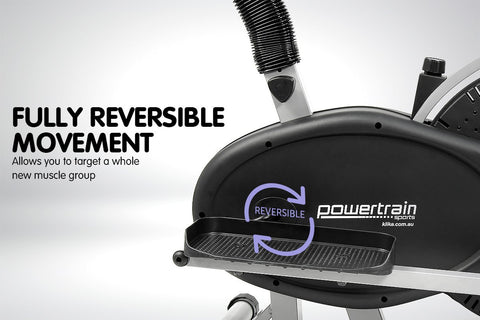 Reversible movement: This elliptical bike features a fully reversible movement which allows you to target a whole new muscle group as you push backward. Tone your legs like no other machine on the market!