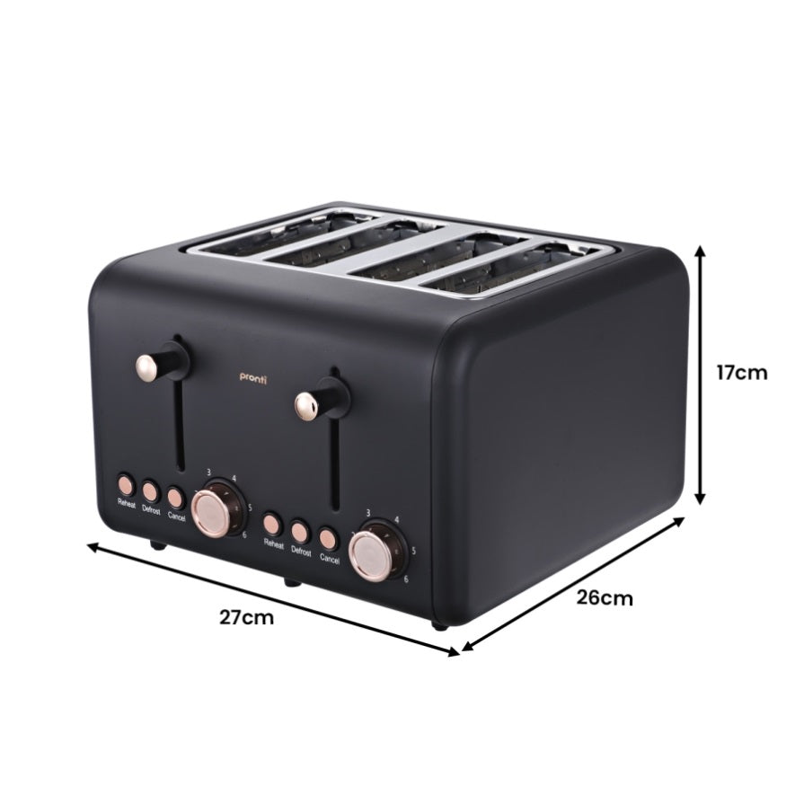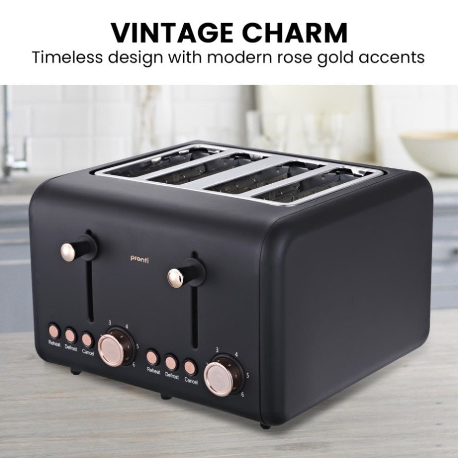 Pronti 4 Slice Toaster Rose Trim Collection - Black TSR-4SL-GST-BK