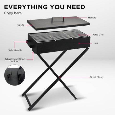 Whether you're camping, hiking or relaxing on the patio, enjoy your favourite barbecued foods with this portable charcoal grill. It comes with a steel cover, gridiron and base for convenient cooking and grilling. The legs can be folded for compact storage, and you can choose from two height settings.
