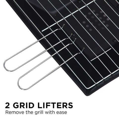 The cover prevents embers from flying around, keeping you and your family safe as you enjoy the warm fire. This brazier also comes with two grill lifters and a heat-resistant poker. The deep basin allows you to use either wood or charcoal for that delicious, smoked flavour. Gather your friends for a BBQ lunch or dinner and drinks in the patio!