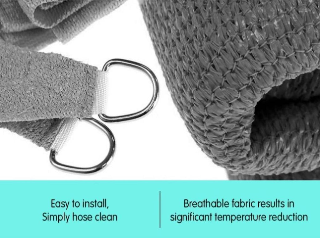 These shade sails offer the utmost in convenience; they are easy to install, and clean off with the hose. Suitable for covering patios, courtyards, playgrounds, and parking lots, etc.