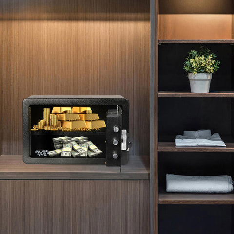 Protect your valuables with this secure digital safe β the perfect safe box for cash, documents, jewelry, and more! Whether you're looking for a small safe to store your money, a gun safe to keep firearms secure, or a fireproof safe to protect important documents from fire damage, this security box has you covered. It features an easy-to-use key safe system and a robust lock box design, making it an ideal choice for home, office, or travel. Keep your peace of mind knowing your most valuable items are locked up tight in this durable, fireproof document box. This money safe is a must-have for anyone who values security and protection β get yours today and experience the ultimate in safe storage!