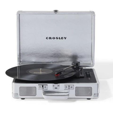 Crosley Cruiser Bluetooth Portable Turntable - Silver - Some say you can’t improve on a classic, but we are here to prove them wrong with the Crosley Cruiser Bluetooth Portable Turntable. Features Bluetooth output functionality, so you can listen to your favourite records on the speaker system of your choice! The upgraded Cruiser design retains its charming portable suitcase shell in a rainbow of colours, three speeds and pitch control for all your listening needs, a Bluetooth receiver and built-in speakers so you can listen on the go — but with the added option to pair it with your favourite external speakers via Bluetooth output.