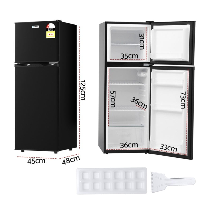 Devanti 122L Two Door Bar Fridge Mini Fridge with Freezer Black BF-F-D-122L-BK