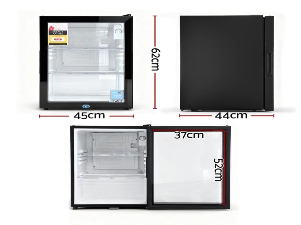 Devanti 56L Bar Fridge Glass Door Mini Fridge Countertop Cooler Black BF-F-G-56L-BK