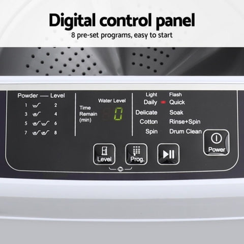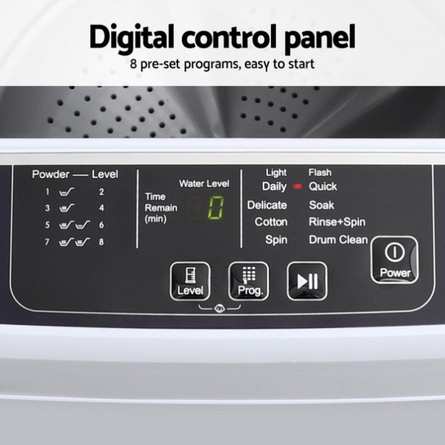 Experience convenience and power with the Devanti Washing Machine, designed to make laundry day easier. With a 6kg washing capacity and eight different programs, it offers versatility for all your laundry needs. The powerful tub washing function ensures a thorough clean, while the 20-minute quick wash program is perfect for time-sensitive loads.