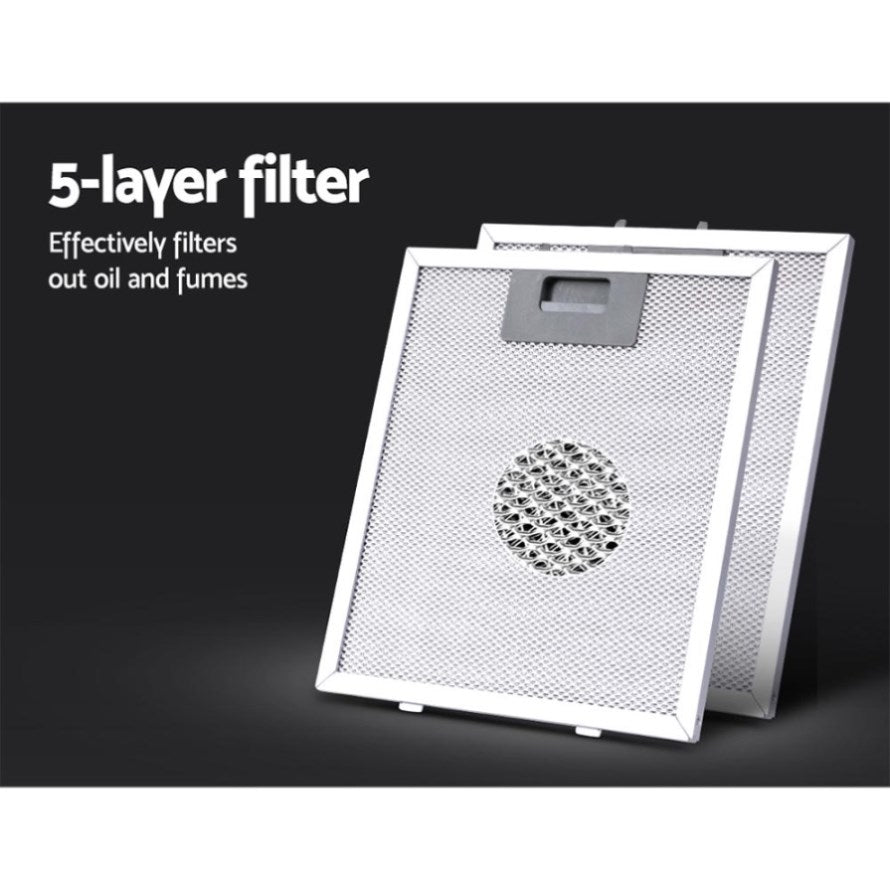 Frying, searing and grilling all the time Cooking in an enclosed space can deteriorate the quality of air resulting in stifling odours all around. Let our Devanti Wall Mounted 900mm range hood help keep your home smoke and odour-free always. The stainless glass canopy operates quietly, consumes less power and comes with adjustable chimney. It features three selectable speeds to suit your cooking needs. The extra-large extraction area traps grease effectively and ensures a steady upflow. Thanks to a powerful motor and the 5-layer machine washable filter system that effectively filter out oil and fumes for better experience. It even comes with an automatic indicator to inform you that the filter is due for cleaning. Two clear and bright LED lights also provide vivid illumination of your cooking area that you would surely appreciate. Not least, the tempered glass is easy to clean and maintain.