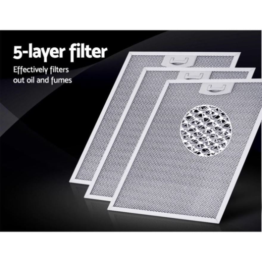 We know how uncomfortable it is to work in a kitchen where there is poor ventilation and odours all around. Let our Devanti stainless steel range hood help reduce unwanted odours and fumes whilst pumping fresh air. It is seamlessly made to fit into your dream kitchen and efficiently remove stifling odours and steam. The range hood features a powerful exhaust system for heavy-duty cooking, an adjustable chimney for the perfect fit, quiet operation, two bright lamps for ample illumination, and 3-speed touch controls to suit your circumstances. Plus, the 5-layer dishwasher-safe aluminium filter effectively filters out oil and fumes and can be removed for cleaning. It even consumes less power and offers safe and reliable operation. Not least, the tempered glass is easy to clean and maintain. A cleaner and healthier kitchen is just a click away. Purchase now.