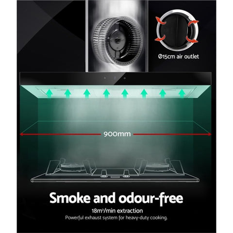Devanti 900mm Range Hood 90cm Rangehood Glass Stainless Steel RH-D-M75-90-SR-BK