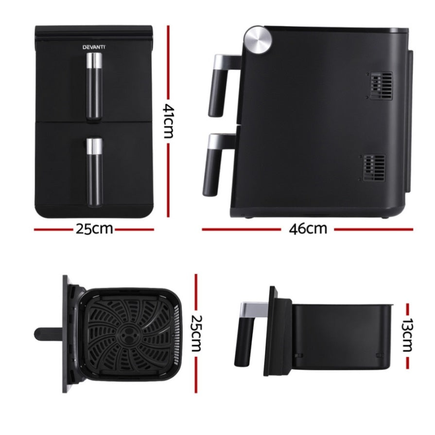 Devanti Air Fryer Oven 11L Dual Zone Fryers AF-K-11L-BK