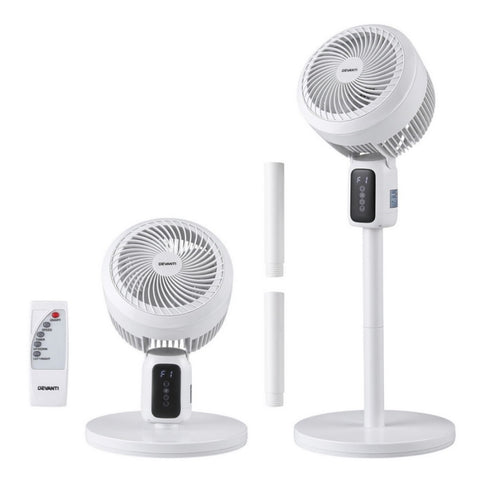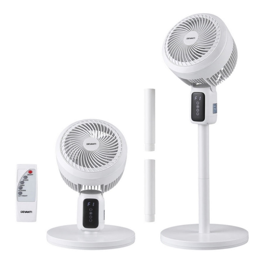 Stay cool and comfortable all year round with this Devanti pedestal fan with remote. Designed with height adjustment from 43cm to 80cm, it can be used as a compact mini fan for desktops or as a full-size pedestal fan for cooling larger areas. The 3D air circulation, combined with 45�� vertical tilt and 90�� horizontal swing, delivers wide coverage to every corner of the room.