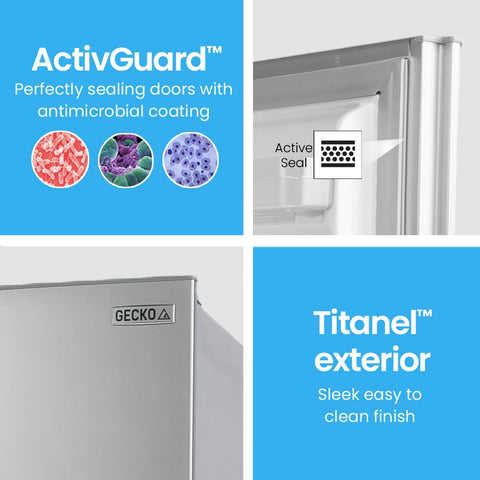 The Gecko Camping Fridge Freezer is designed to perform in harsh Australian conditions with quality compressor technology and thick insulation for fast cooling and operation in ambient temperatures of up to 38 degrees! The Gecko range features ActivSealTM technology which consists of perfectly sealing doors with an anti-microbial coating to inhibit the growth of germs. All this is wrapped in a sleek TitanelTM metal finish, ensuring it will look right at home, anywhere!