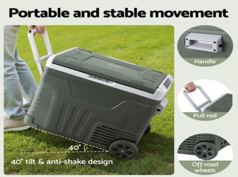 Portable Fridge 50L Camping Bar Fridges Freezer 12V/24V/240V PFN-A-50-WHEEL-GR