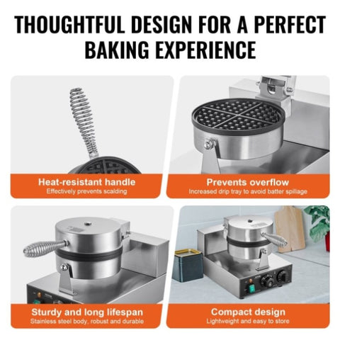 VEVOR Commercial Maker, 1230W Round Baker Machine, Non-Stick Stainless Steel Belgian V952-SYBLSHFBJDPFYJ29AV3