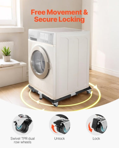 Move your appliances effortlessly with the 4 swivel dual wheels that glide smoothly on any surface without scratching the floor. And when you need the washing machine dolly to stay still, the locking feature ensures everything stays secure while your washing machine is in use.