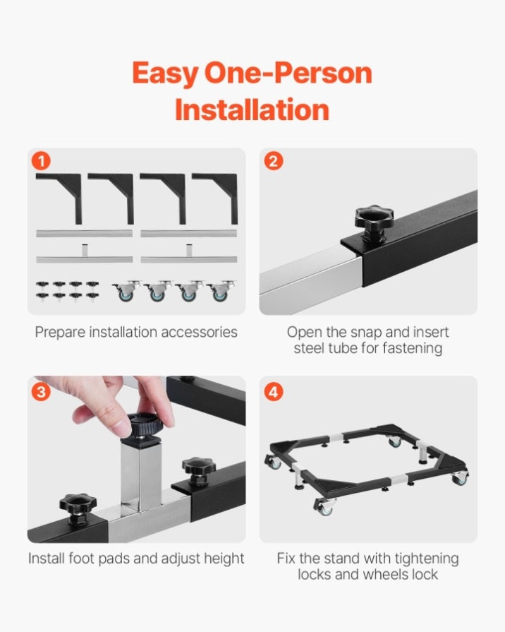 This fridge stand mobile base is built to last with a full steel frame and reinforced feet, supporting up to 1200 lbs! Whether you're moving heavy appliances or simply need to keep them stable, this dolly helps you save time and effort while keeping everything in place.