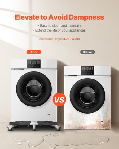 Raise your appliances off the floor for better airflow and easy drainage. This appliance dolly cart helps keep things ventilated, reduce humidity buildup, make cleaning easier, and help extend the lifespan of your appliances.