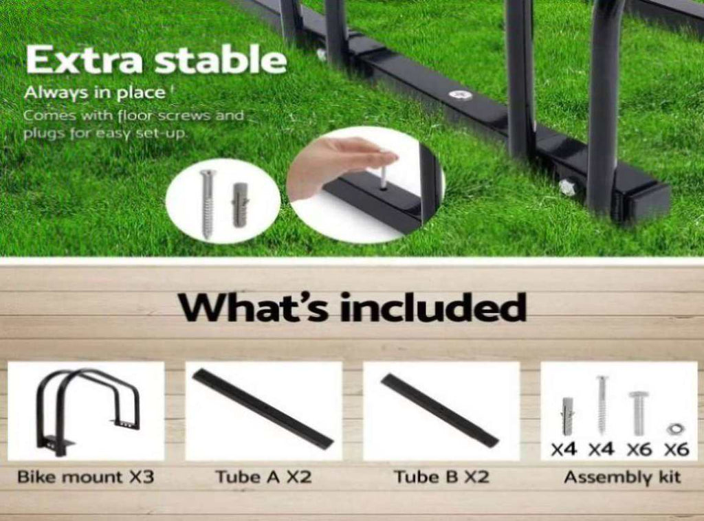 Weisshorn 3 Bike Stand Rack Bicycle Storage Floor Parking Holder Cycling Black BIKE-3-BK