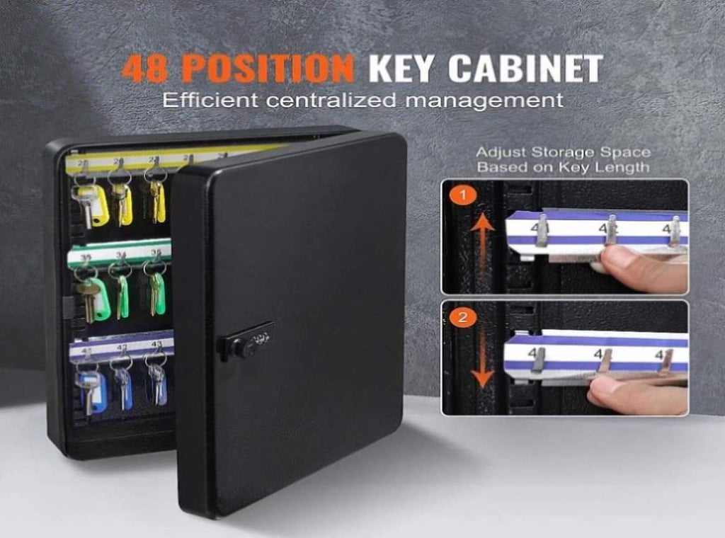 Built from high-quality cold-rolled steel, the cabinet features a 3-digit mechanical combination lock for dependable security no more worrying about lost keys. The 48 adjustable hooks allow flexible key organisation, accommodating keys of various lengths for ultimate convenience.